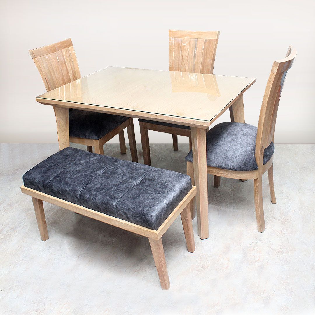 DESCRIPCION: COMEDOR EN MADERA FLOR MORADO 4 PUESTOS, TIENE 3 SILLAS Y UN BUTACO, LA TAPA MADERA TIENE VIDRIO PROTECTOR, TAPIZADO ANTIRRASGUÑOS ANTIFLUIDO, LA TAPA MIDE 80X120