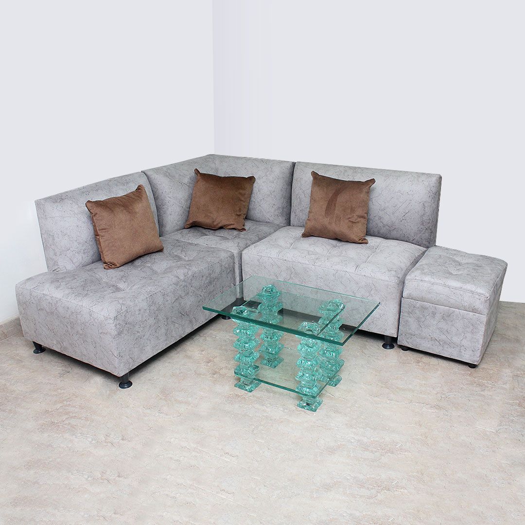 Descripción de Producto: SALA EN MODELO L DE TRES POLTRONAS MAS PUFF Y MESA DE CENTRO, EN TELA ATIRRAGUÑOS ANTIFLUIDOS MEDIDAS 183X183 X 85 DE ALTO Y 67 DE FONDO
